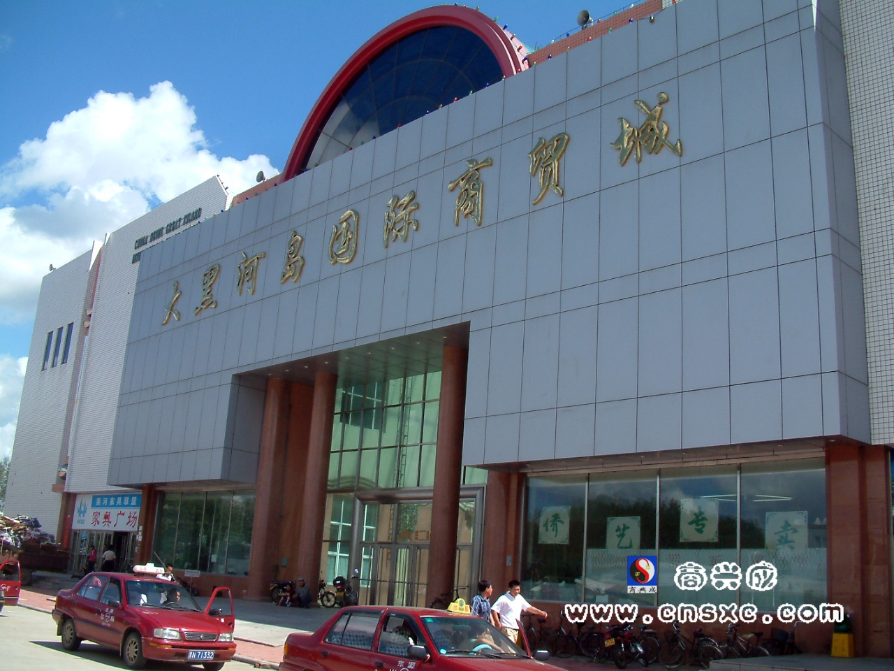 黑龙江大黑河岛国际商贸城总投资近1亿元人民币、风格别具特色的现代化建筑,于1998年在大黑河岛上拔地而起,占地面积3.2万平方米。1999年8月18日国贸城隆重开业。